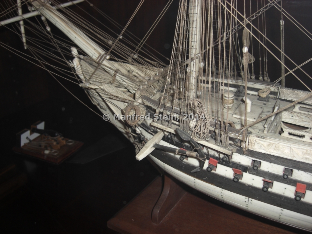 warship with 72 cannon and a warrior figurehead, made ca. 1798. Size: 36 x 27