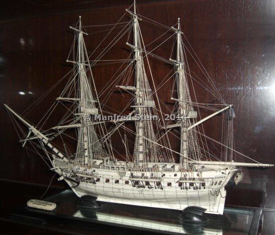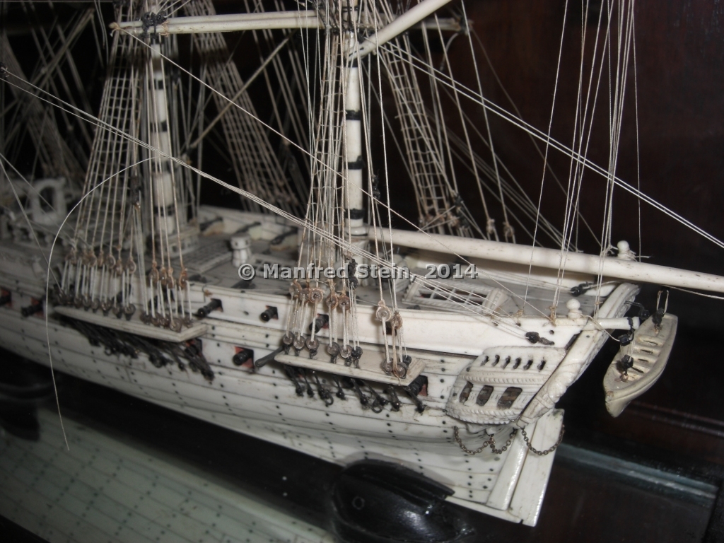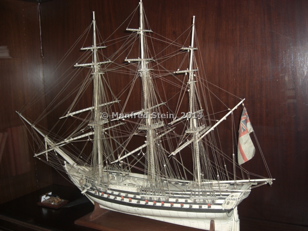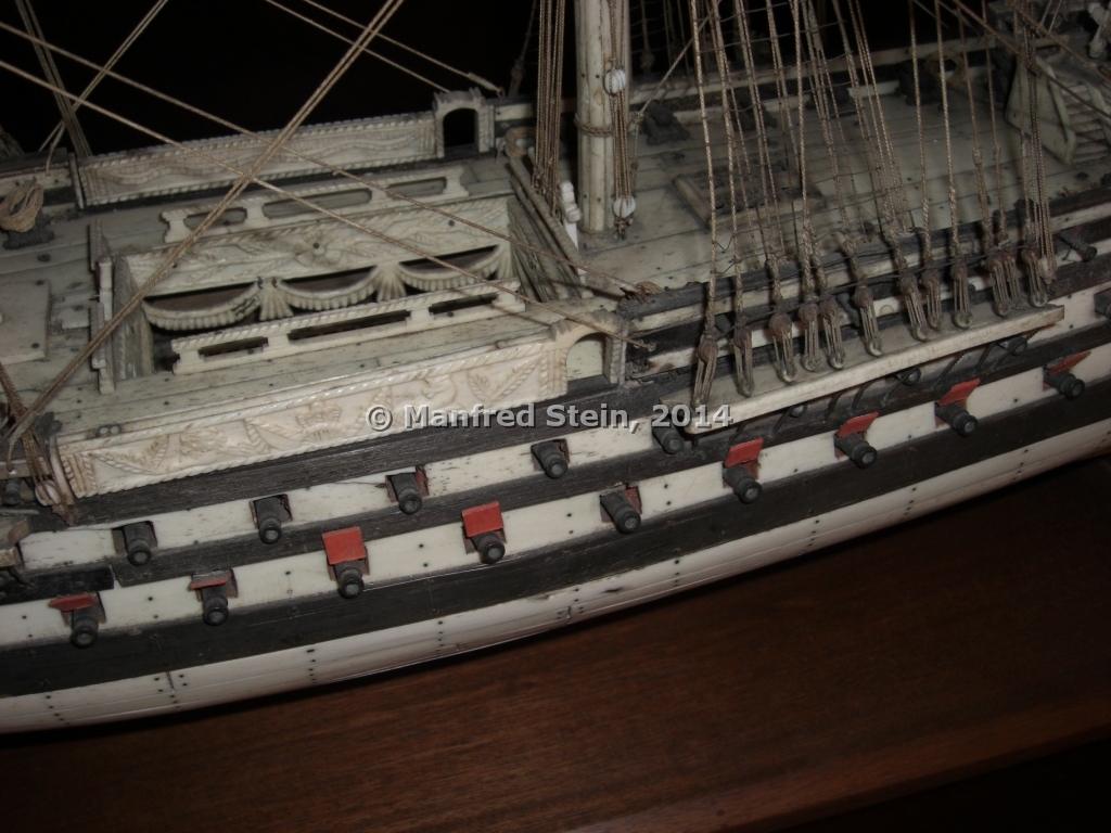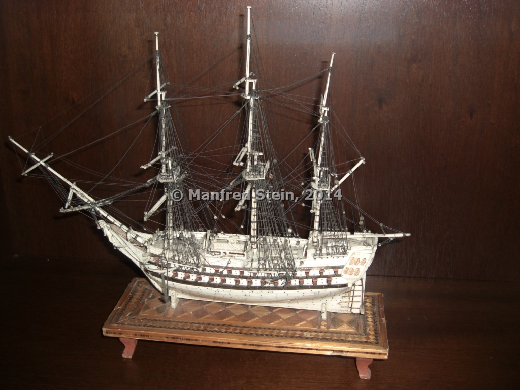 warship with 72 cannon and a warrior figurehead, made ca. 1798. Size: 36 x 27